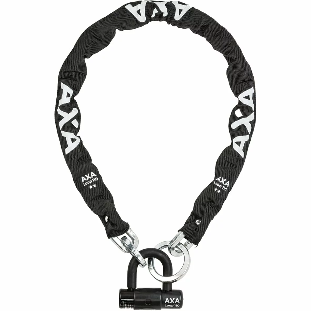Axa Loop 110 er en godkendt (Art 2 -stjerner) kæde med løs hængelås, der er meget velegnet til at låse en dyr (elektrisk) cykel eller din lastcykel. Cylinderen er beskyttet med et dæksel, så fugt og snavs ikke har nogen direkte adgang til cylinderen. Dette gavner bæredygtigheden af ??din lås. Den stærke sorte polyesterafdækning beskytter din cykel mod skader. Hvis det sker, at du har mistet din cykelnøgle, er det ikke noget problem. En ekstra nøgle kan bestilles via AXA Online KeyService og leveres inden for et par dage. Kæden kan bruges på 2 måder. 1 Er den normale? Dobbelt? Vej, du fikserer kæden omkring en stang og lukker den med hængelåsen. Den anden mulighed 2 er at få kæden gennem kædens øje og lave en kort løkke. Sådan maksimerer du kædens længde. Den anden fordel er, at vægten af ??kæden halveres, da du kun har 1 stykke af kæden i din hånd. Loopen er 110 cm lang, forbindelserne er lavet af hærdet stål, og diameteren er 9,5 mm.