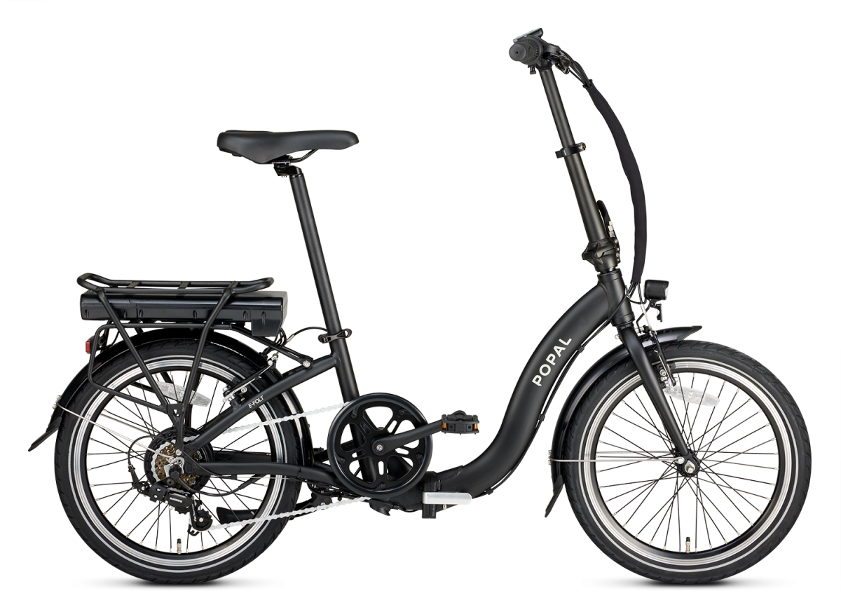 Popal E-Folt 1.0 er en ny generation af foldbare cykler: Smuk og lille, med masser af fine gadgets. Denne elektriske foldcykel er udstyret med 20 tommer hjul, Shimano Tourney 6 gear og V-bremser. Batteriet på ikke mindre end 420Wh tager dig hen hvor du vil. Det slanke LCD-display Display Kingmeter KM 529-LCD??????? viser alle de oplysninger du har brug for undervejs. E-Folt 1.0 er foldet 85×40 cm og er 65 cm høj