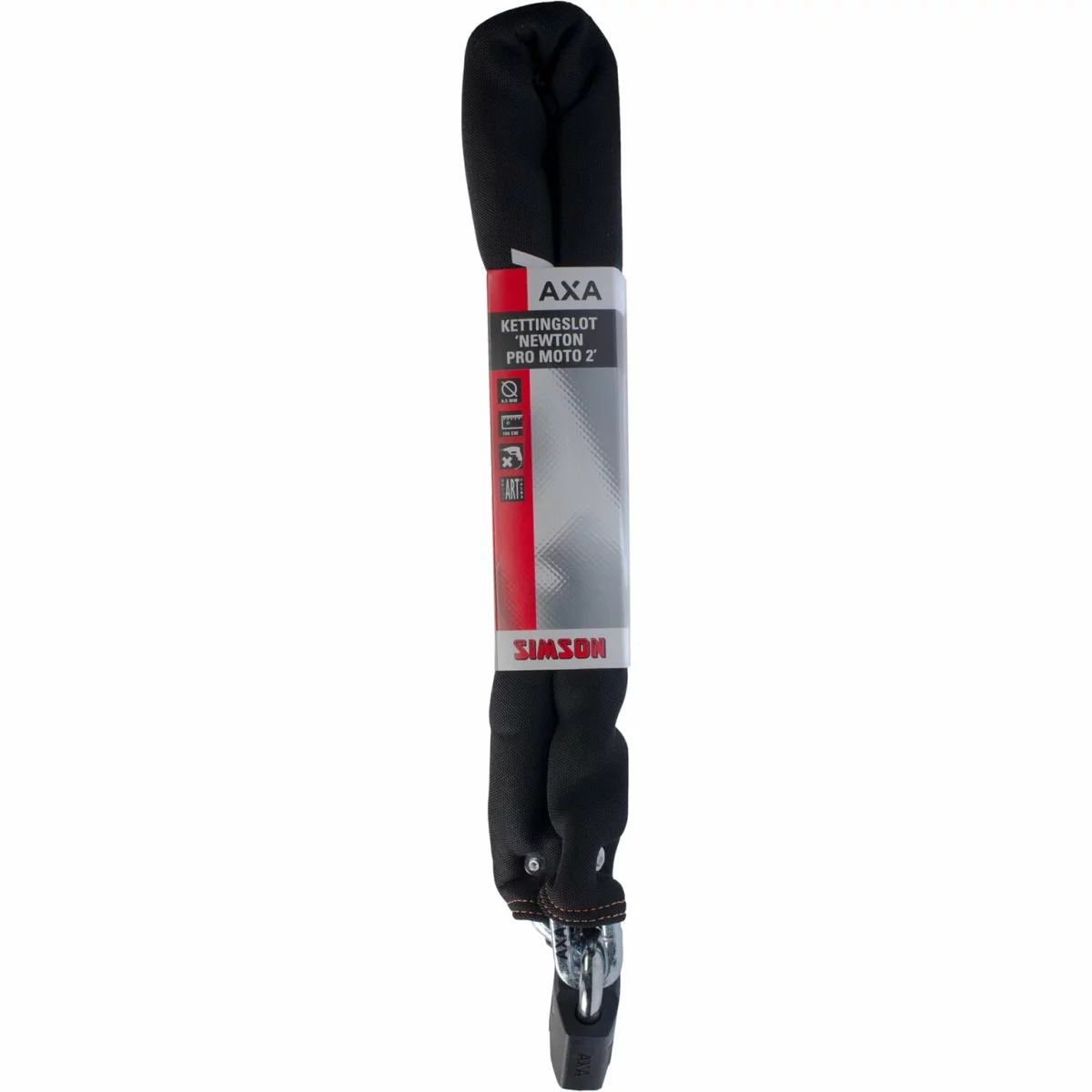 Simson Chain Lock Axa Newton Pro Moto 2. En meget stærk sort kunst godkendt kædelås på en meter lang. Låsen er Art2 -godkendt og kan derfor bruges som en godkendt lås til næsten enhver cykelforsikring. Kæden er lavet af 8,5 mm tempereret stål og har en integreret lås med anti -boringplade til ekstra brugervenlighed og sikkerhed. Linkene er modstandsdygtige over for en blinkkraft på op til 73 kN.
